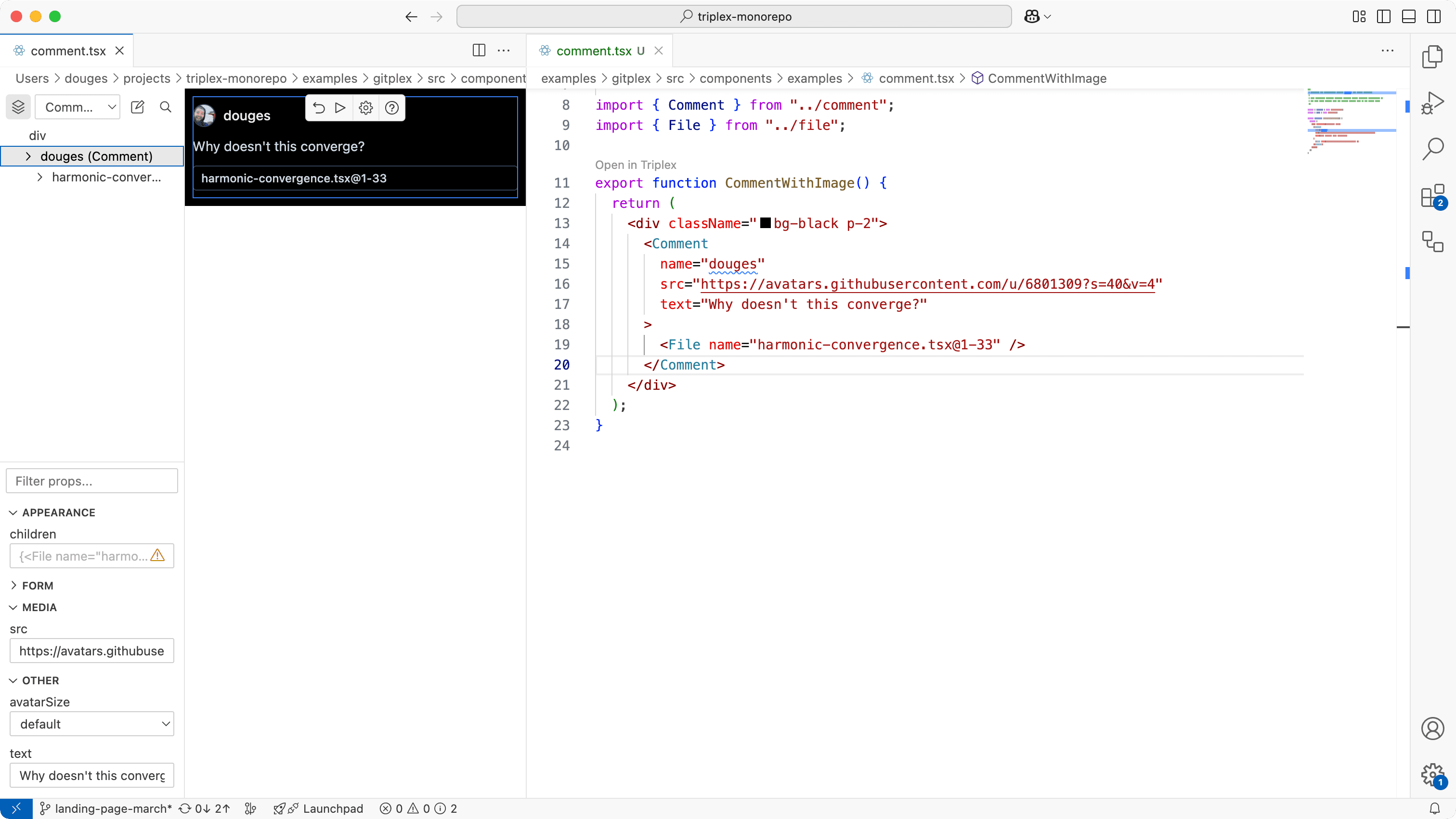 Build your first React component with Triplex and learn as you go. Don't worry about bundlers, frameworks, or even your local environment. Just build. Triplex takes care of the rest.